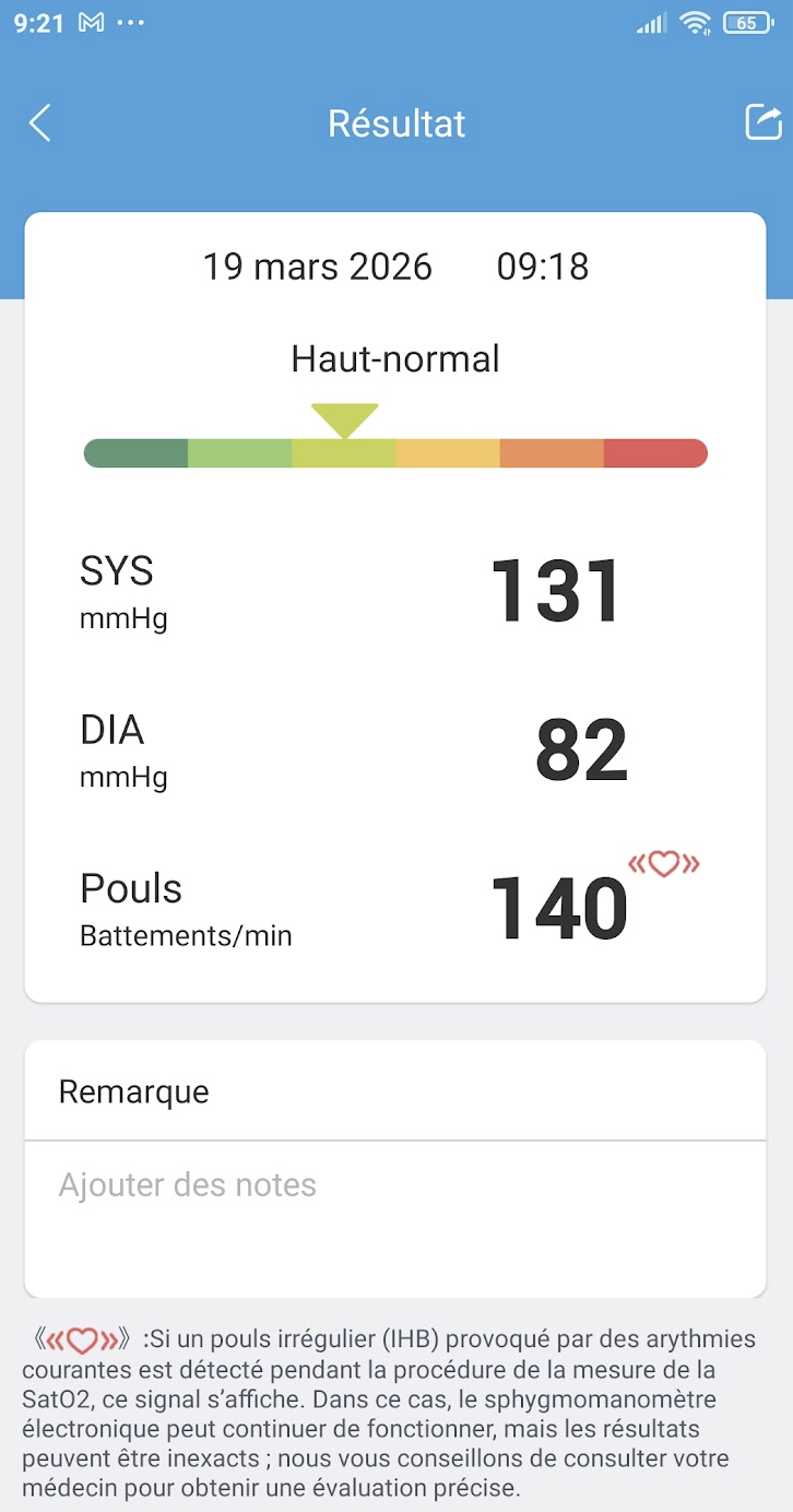 Dies sollte grundsätzlich unbedenklich sein, aber wenn das Symbol häufiger erscheint (zum Beispiel mehrmals pro Woche bei täglichen Messungen) oder plötzlich häufiger als üblich auftritt, empfehlen wir, dass Sie dies Ihrem Arzt mitteilen, der weitere Tests durchführen kann.
