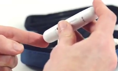 - Press the blood glucose meter's Memory button for 3 seconds to turn it on.