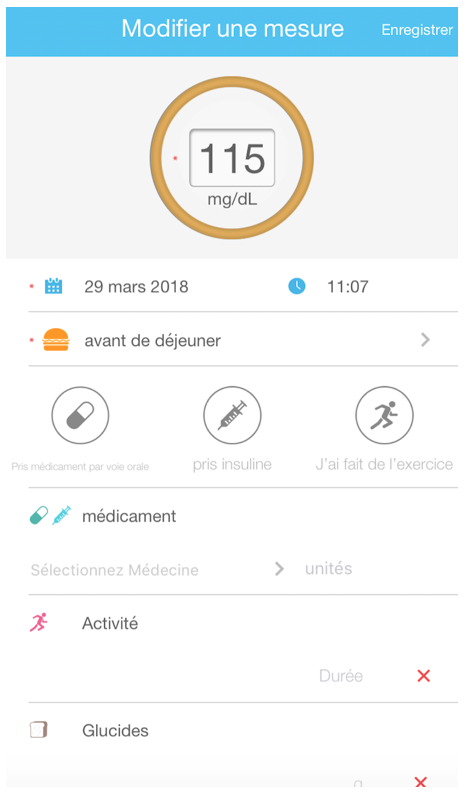 - Enter your meal, treatment and physical activity at the time of the measurement to complete your result.