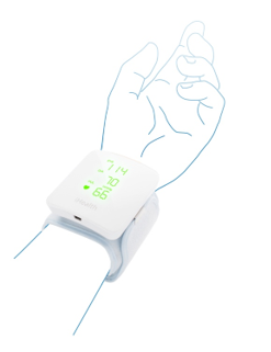 - Place the device on your wrist and raise it to the level of your heart. See How to place the blood pressure monitor properly.