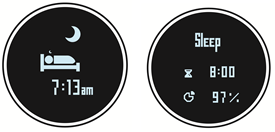 Si vous vous réveillez pendant la nuit, vous pouvez consulter l'heure sur votre iHealth Edge. Faite une rotation franche de votre poignet pour "réveiller" le iHealth Edge. L'heure et l'icône sommeil s'affichent pendant 4 secondes puis un rapport de votre sommeil effectué jusque là s'affiche pendant 3 secondes.
