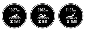 iHealth Wave riconosce 3 stili di nuoto (stile libero, rana e dorso). Durante una sessione di nuoto lei può consultare le seguenti infromazioni sullo schermo del suo iHealth Wave effettuando una rotazione del polso o toccando lo schermo. Nell'ordine: