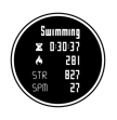 - Numero delle bracciate, stile libero e rana per minuto (SPM)